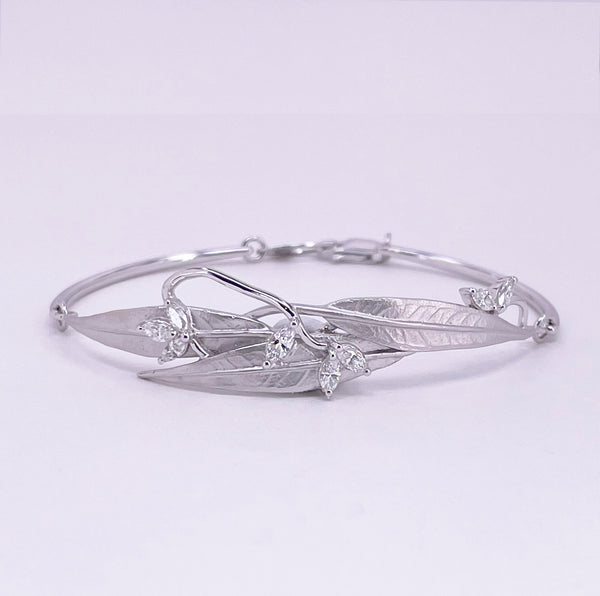 Designed by Sabina Lee, its design concept is naturalistic leaves stylized under modern minimalist concept. Ideal for gift giving for young and mature ladies.
